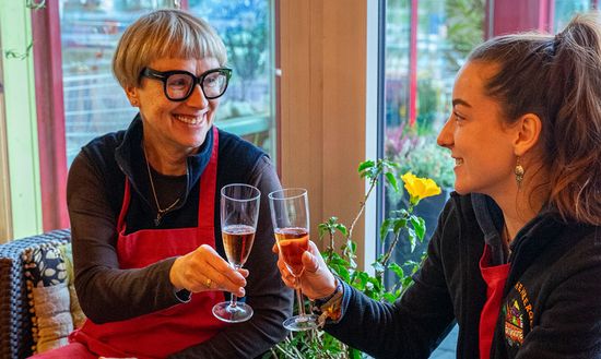 Beim Anstoßen darf es genauso bewusst sein: ein kühler Bio-Secco, ein Appleritif aus naturtrübem Apfelsaft und Kräutern, hausgemachte Limonade oder ein alkoholfreier Punsch mit Orange, Zimt und Nelke. Getränke, die Genuss schenken, ohne laut zu sein.