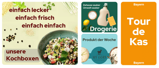 Außerdem möchten wir dich auf unseren Service für Kochboxen und Rezepte aufmerksam machen. Damit wird das Kochen zuhause noch einfacher und abwechslungsreicher – perfekt, um neue Gerichte mit unseren hochwertigen Bio-Produkten auszuprobieren.