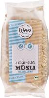 Zutaten: 3-Korn-Vollkornflocken*(54%), (Reis*, Buchweizen*, Hirse*), Rosinen*, MANDELN*(21%); *aus kontrolliert biologischem Anbau. Kann Spuren von LUPINE, SESAM, SOJA, EI