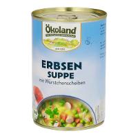 Erbsen gehören zu den ältesten Kulturpflanzen der Menschheit, sie haben ihren Ursprung im Orient. Erbsen sind ein ganz besonderes Gemüse - mit ihnen liefert unsere Ökoland Erbsensuppe wertvolles Eiweiß! Unsere Erbsen werden schonend zubereitet, gemeinsam mit typischem Suppengemüse und traditionellen Gewürzen perfekt abgeschmeckt. Und dann geben wir - für den herrlich herzhaften Geschmack - unsere original Ökoland Würstchenscheiben dazu!