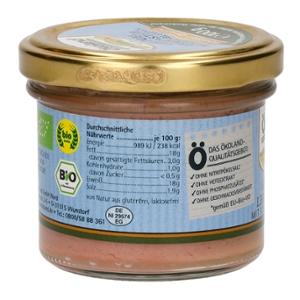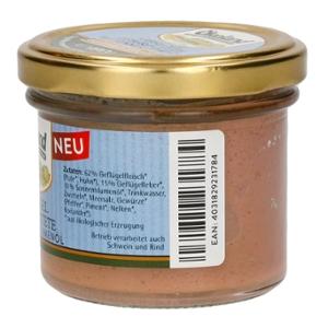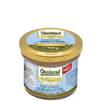 Die Ökoland Geflügel-Leberpastete ist eine feincremige und mild gewürzte Wurst-Spezialität aus reinem Bio-Geflügelfleisch und Bio-Geflügelleber in Gourmet-Qualität. Mit Sonnenblumenöl erhält sie die besonders feine und streichfähige Konsistenz. Traditionelle Bio-Gewürze runden den Geschmack vortrefflich ab. Im kleinen Zylinderglas praktisch portioniert und leicht entnehmbar. Für kleine Haushalte und Flexitarier perfekt geeignet.