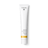 Inhaltsstoffe: Wasser, Mandelmehl, Auszüge aus Ringelblume und Wundklee, Alkohol, Erdnussöl, Auszüge aus Kamillenblüten und Johanniskraut, Sonnenblumenöl, Auszug aus Zaubernuss, Weizenkeimöl, Mandelöl, Ätherische Öle, Auszug aus Acerolakirsche, Xanthan, Lecithin, Alginat