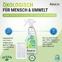 Streifen- und sorgenfrei auf Basis pflanzlicher Inhaltsstoffe zaubert der AlmaWin Glas & Fenster Reiniger lang anhaltenden Glanz auf alle wasserfesten Oberflächen ohne Schlierenbildung. Dadurch lassen sich Fingerabdrücke leichter abwischen, Staub und Schmutz setzen sich nicht mehr so schnell fest.Der AlmaWin Glas & Fenster Reiniger ist ein öko-zertifiziertes, biologisch sehr gut abbaubares Konzentrat. Die sorgfältig ausgewählten natürlichen Rohstoffe sind pflanzlichen Ursprungs. Das Produkt enthält pflanzliche Zuckertenside. Der Glas & Fenster Reiniger ist dermatologisch erfolgreich getestet. Das garantiert eine gute Hautverträglichkeit.