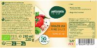Tomatenmark* einfach konzentriert 31 %, Wasser, Zwiebeln*, Apfelsaftkonzentrat* 10 %, rote Paprika*, Branntweinessig°*, Knoblauch*, Meersalz, Koriander*, Schnittlauch*, Petersilie*, Paprikaflocken*, Cayennepfeffer* 0,3 %, Nanaminze*, schwarzer Pfeffer*, Maisstärke*, Verdickungsmittel: Guarkernmehl*