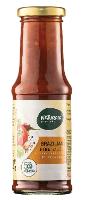 Die feurig scharfe Brazilian Fire Sauce besticht durch die feine Kräuterkomposition aus Koriander, Petersilie, Schnittlauch und Nanaminze. Durch Cayennepfeffer wird sie feurig scharf und gehört mit dem Schärfegrad drei (von vier Chilischoten) zu unseren scharfen Grillsaucen. Die Sauce passt hervorragend zu Steaks, geräuchertem Tofu sowie anderen vegetarischen und veganen Alternativen. Gesüßt wird sie ausschließlich mit Apfelsaftkonzentrat. Als Verdickungsmitteln setzen wir Guarkernmehl ein.