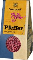 Rosa Pfeffer ist botanisch nicht mit dem Pfeffer verwandt. Er stammt vom Schinus-Baum, verdankt seinen Namen seiner Form und seinem Geschmack. Rosa Pfeffer passt gut zu Fisch, Spargel und Gemüse, gibt aber auch Schokolade das gewisse Etwas.