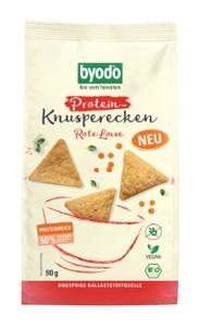 Veggie-Protein-Power trifft auf geballte Ladung extra Crunch! Bei unseren Protein-Knusperecken Rote Linse verwandelt sich feinstes Linsenmehl in knusprig-würzige köstliche Häppchen: Die Linse sorgt für besonders knusprigen Genuss, hat von Natur aus einen hohen Gehalt an wertvollen pflanzlichen Proteinen und ist eine Ballaststoffquelle - der ideale Power-Snack. Luftig, locker und liebevoll gepufft werden unsere Knusperecken nicht frittiert und enthalten so 50% weniger Fett als herkömmliche Chips.