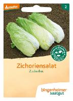 Ein toller Wintersalat mit etwas feinerem Geschmack als Endivien. Die Blätter haben ein würzig-nussartiges, leicht bitteres Aroma und enthalten gesunde Bitterstoffe, die die Verdauung fördern. Bildet sehr schöne feste, zuckerhutförmige Köpfe, die leichte Fröste vertragen"TIPP":  Zichoriensalate stellen keine hohen Ansprüche an Boden und Pflege.