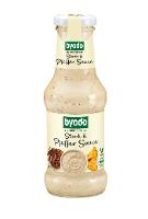 Die Steak & Pfeffer Sauce von Byodo ist der ideale Begleiter für Fleisch, gegrilltes Gemüse oder Kartoffelecken aus dem Ofen.