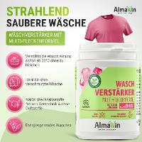 Bei starken Verschmutzungen 1 EL (20 g) Waschverstärker zusätzlich zum Waschmittel direkt in die Waschtrommel geben und den Waschvorgang sofort starten. Das verwendete Waschmittel wie gewohnt dosieren. Nicht geeignet für Wolle & Seide.